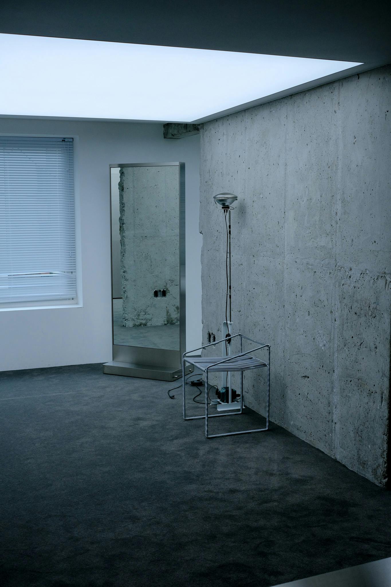 I designed the whole interior and the furniture. It is very industrial. This place is used for gallery exhibitions and pop-up projects. So it's divided into three sections. When we started this project, I worked on a new furniture series that employs ‘action’ in the furniture, such as this sliding door.