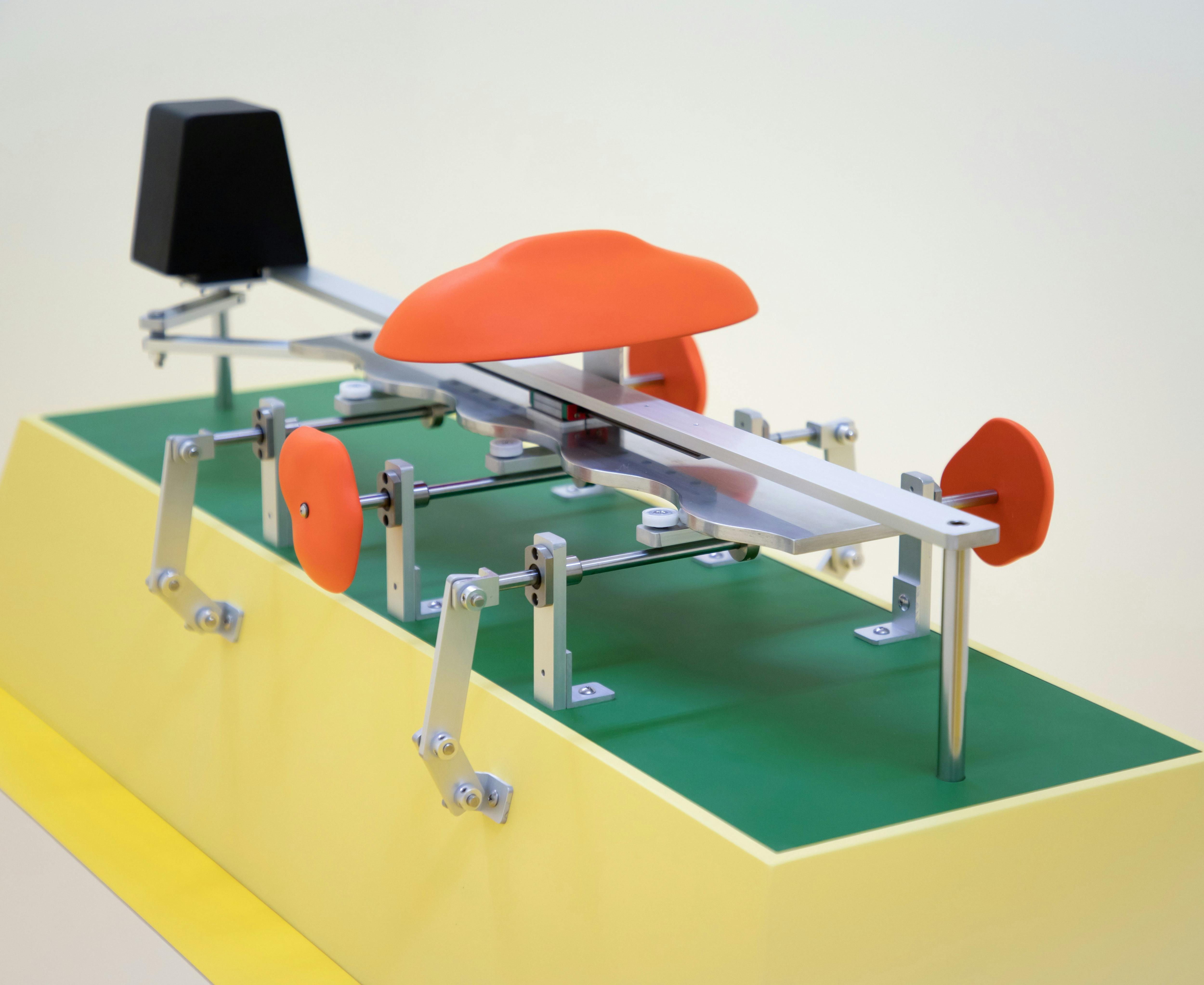 Kobayashi produces works in which he observes the leaps, discord, and discomfort that arise by intervening with a physical apparatus or object rather than an actual object or historical event while speculating on different forms. Although many of his sculptural objects and machines have a product-like appearance and suggest functionality, their intended purpose is presented ambiguously, resulting in anonymous and enigmatic forms.